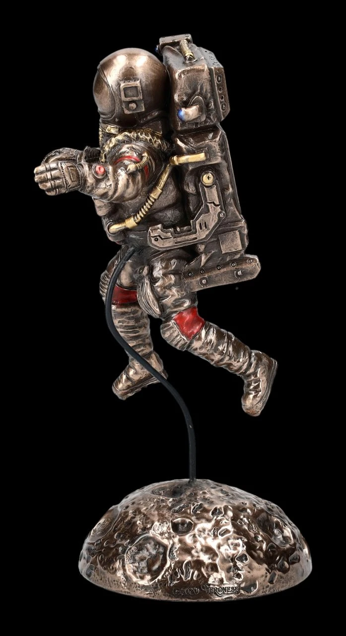Ob Neil Armstrong bei der Mondlandung 1969 den berühmten Satz: ‚Ein kleiner Schritt für einen Menschen – ein großer Sprung für die Menschheit‘ so gesagt hatte oder nicht, ist heute völlig egal. Es war ein Riesenschritt und seit einiger Zeit wird von allen möglichen Nationen geplant, dass er seine Fortsetzung finden soll. Die 16,5 cm hohe, 8 cm breite und 7 cm tiefe Astronauten Figur auf dem Mond stammt aus der Studio Collection von Veronese. Sie ist ein fantastisches Geschenk für jeden Fan der ersten Mondlandung und auch der Weltraumfahrt allgemein. Der ‚Mann auf dem Mond‘ wurde aus edel bronziertem und zurückhaltend colorierten Kunststein (Polyresin) gefertigt. Eine fantastische Skulptur, die auf jedem Schreibtisch oder Sideboard zum sofortigen Blickfang wird.
