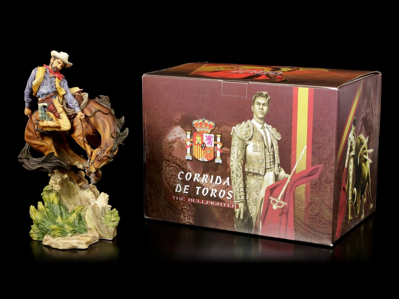 Die handbemalte Figur des Bronco Buster ist einer Skulptur aus Bronze nachempfunden, welche 1895 vom amerikanischen Künstler Frederic Remington urheberrechtlich geschützt wurde. Die wunderschöne und detailreiche Rodeo Figur aus Kunststein (Polyresin) ist aus der Serie Corrida de Totos aus dem Hause Veronese und für jeden Western Fan ein Must Have.