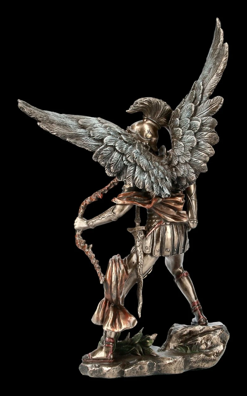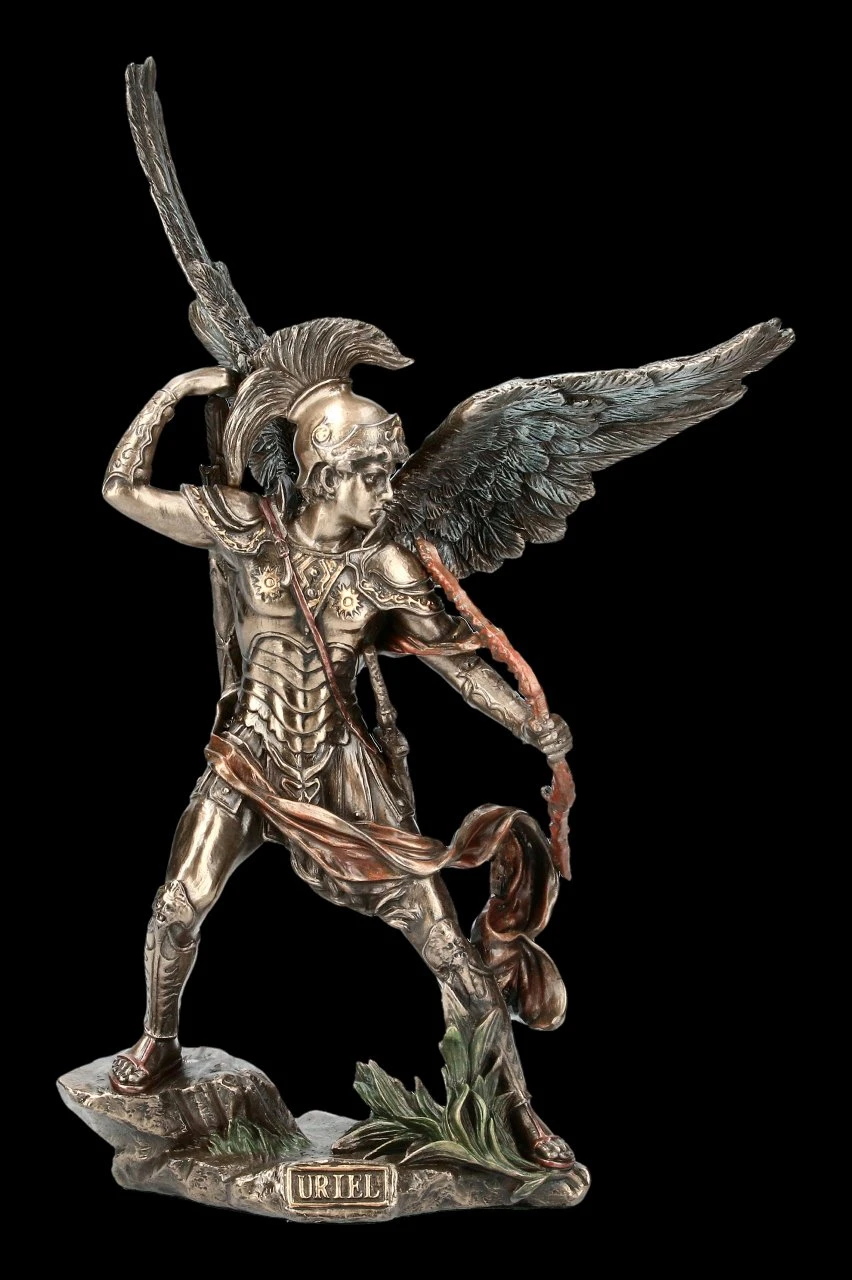 In der hebräischen Überlieferung gilt der Erzengel Uriel als Licht / Feuer Gottes. Er wird hier mit seinem Attribut, einem Feuerbogen, dargestellt. Diese elegante bronzierte und colorierte Figur aus Kunststein (Polyresin) stammt aus der Serie Studio Collection des Herstellers Veronese und überzeugt durch die herausragende Ausarbeitung aller Details.