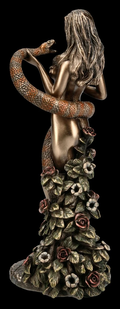 Sie ist die pure Sünde! Eine sinnliche junge Frau wird von einer Schlange umschlungen und hält den sagenumwobenen roten Apfel in der Hand. Diese unwiderstehliche Frauen Akt Figur aus edel bronziertem und zart coloriertem Kunststein (Polyresin) stammt aus dem Atelier des Künstlers James Ryman. Der ästhetisch schöne, 20,5 cm hohe, 8,5 cm breite und 8 cm tiefe Frauen Akt wird überall zum sofortigen Blickfang. Sie werden begeistert sein.