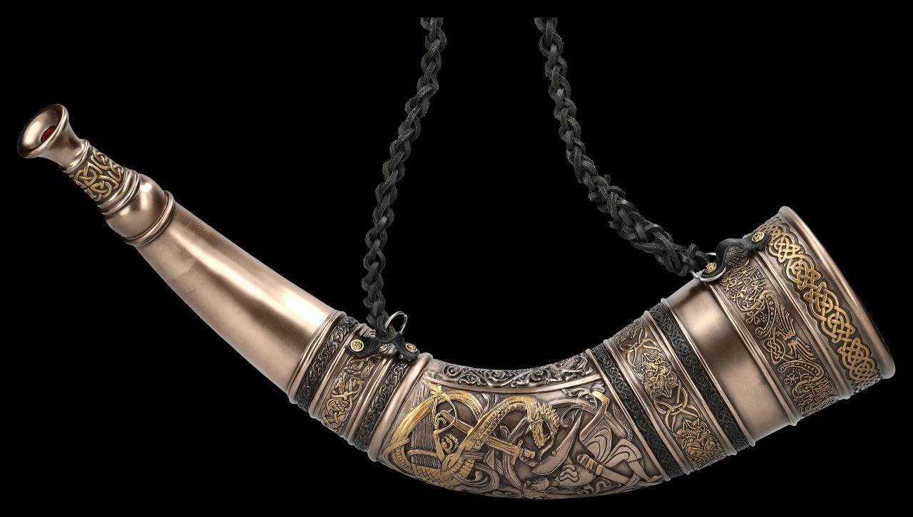Das Germanische Signalhorn war das Rufhorn der Wikinger mit dem sie sich bei der Seefahrt und im Kampf verständigen konnten. In der germanischen Mythogie wurde das Signalhorn aber auch dazu verwendet, die Götter Asgards zu rufen und es wurde auch als Gjallarhorn des Gottes Heimdall bezeichnet.