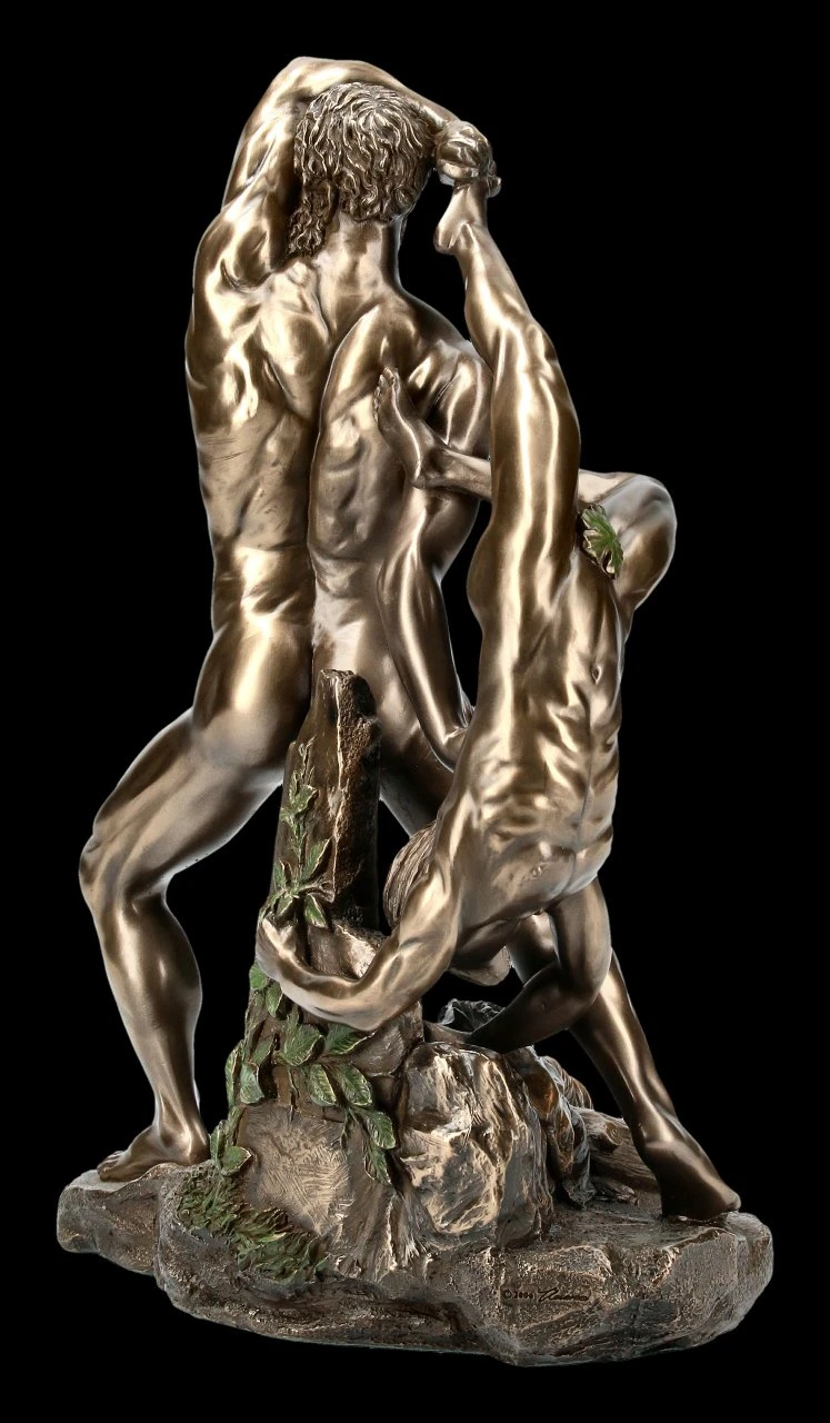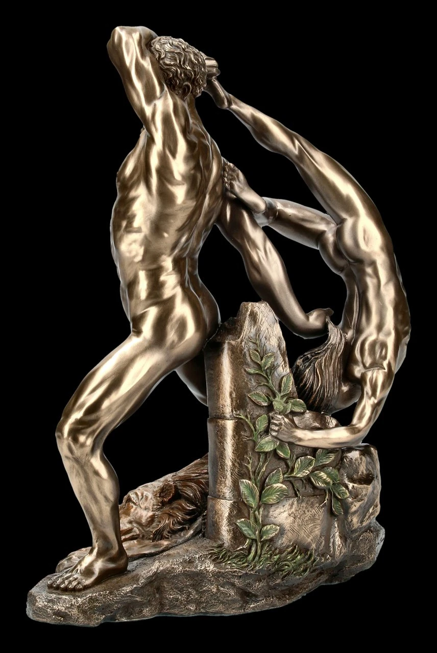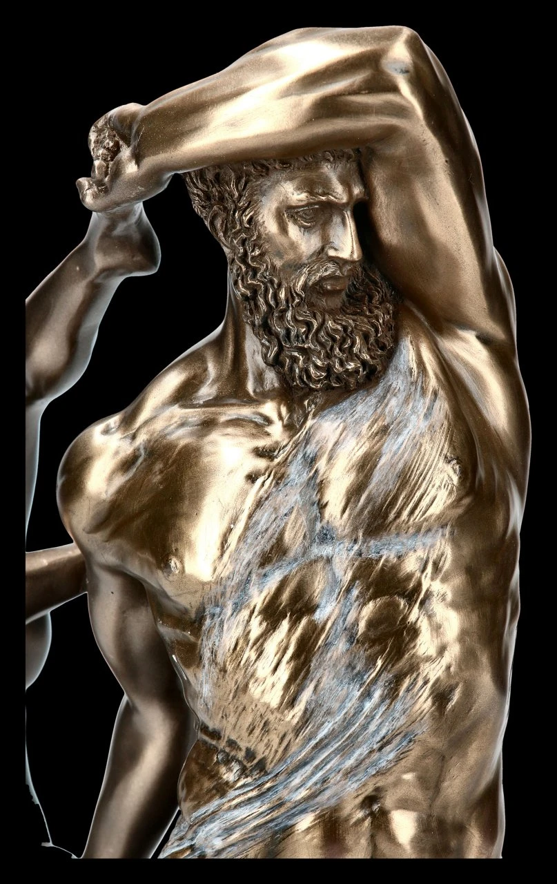 Der vor Wut schäumende und von Schmerzen gepeinigte Herakles (Herkules) schleudert den vermeintlichen Auslöser seiner Qualen in das Meer. Lichas, sein treuer Dieser war jedoch unschuldig. Diese Kunststein Figur ist das ideale Geschenk für jeden Begeisterten der griechischen Mythologie.