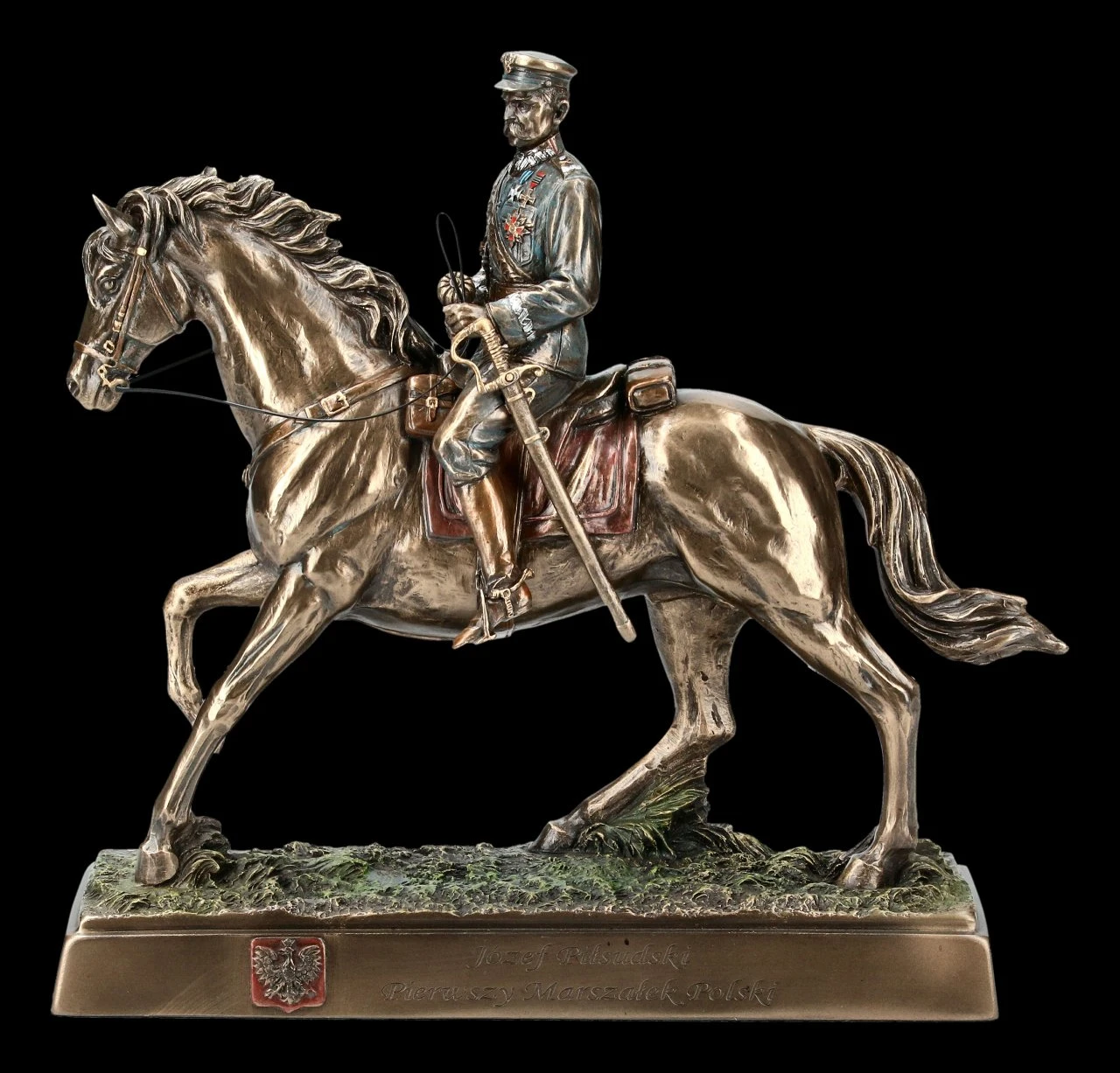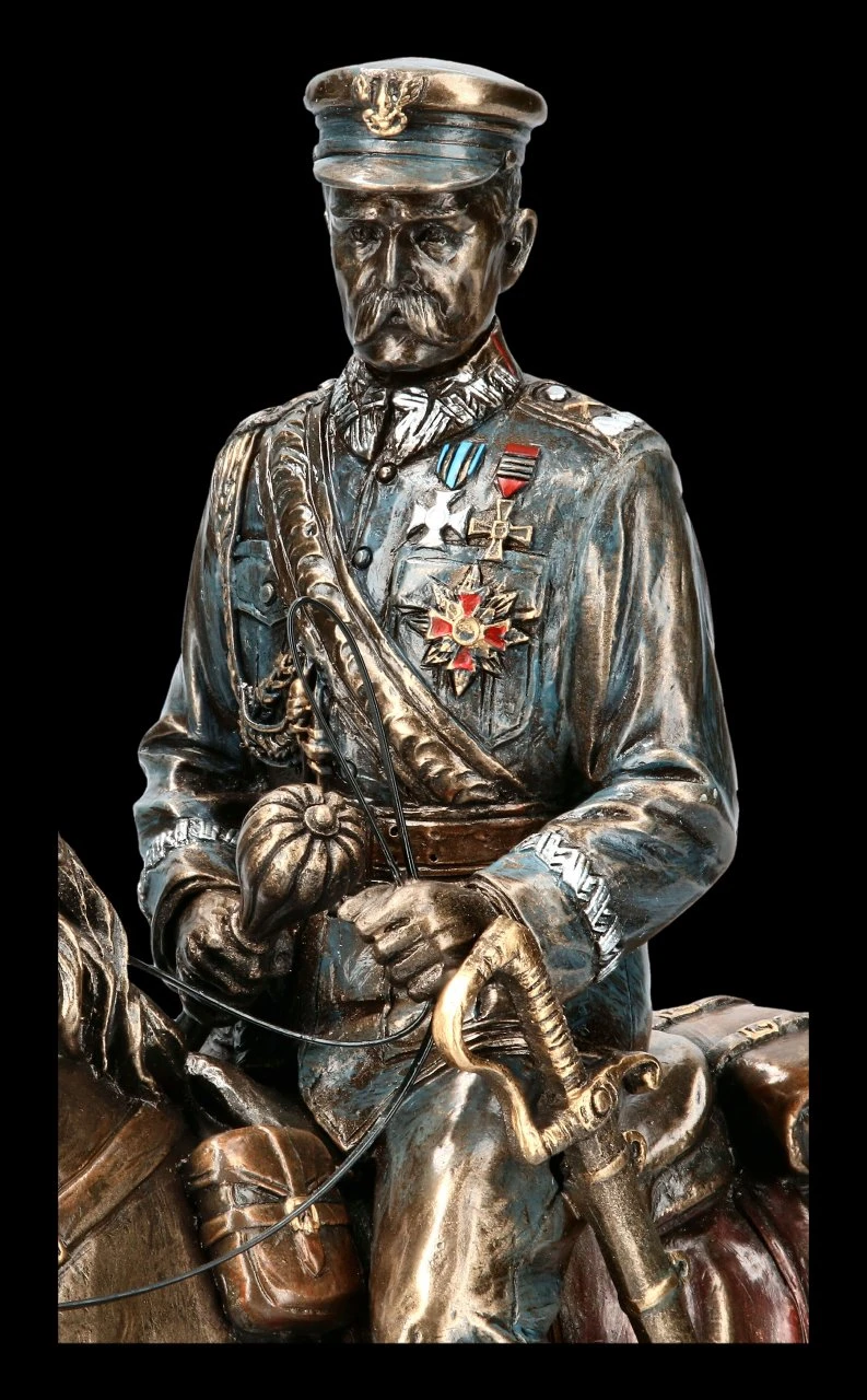 Wunderbar detailreiche bronzierte Kunststein Figur des russischen Militärs und Politikers Józef Klemens Piłsudski. Er kämpfte unteranderem gegen die Russische Herrschaft. Die dezent colorierte Reiterfigur aus der Serie The Triumphs of Humanity von Veronese wird jede Sammlung bereichern.