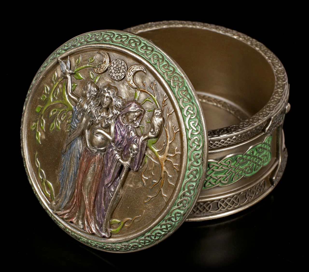 Detailreiches Wicca Schmuckkästchen: Dreifaltigkeit