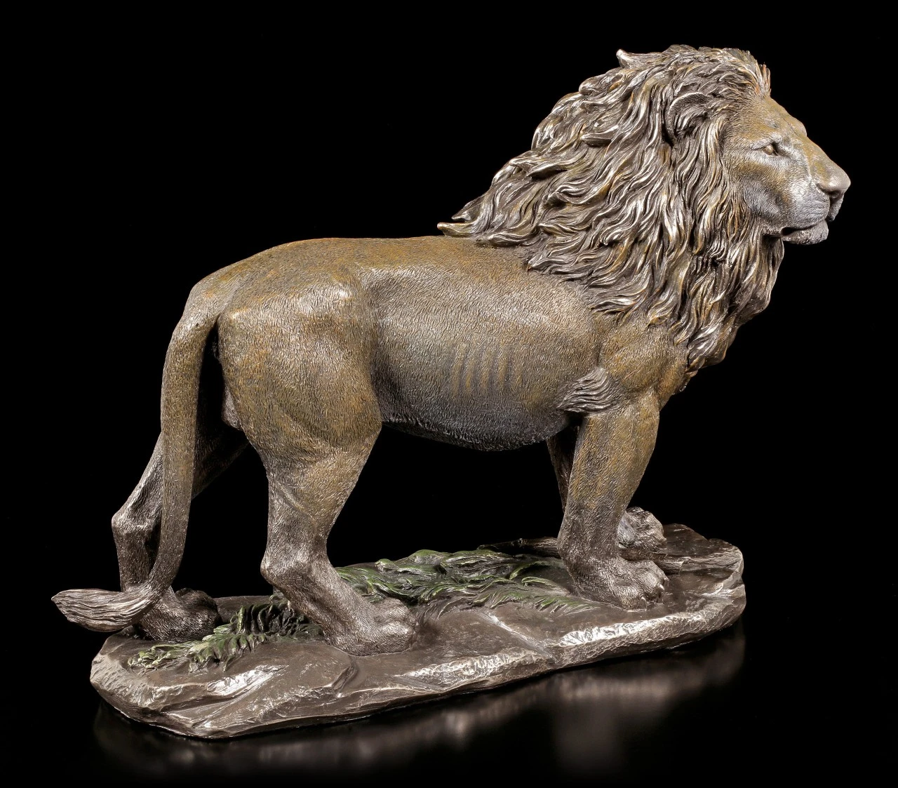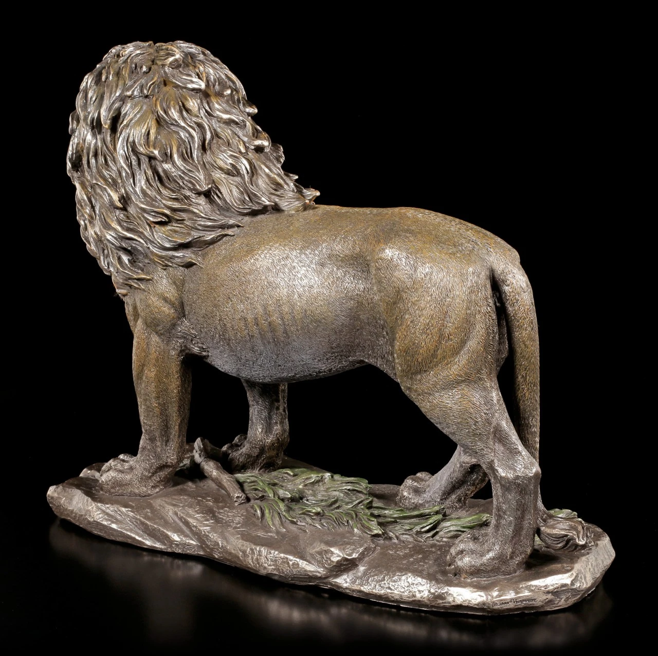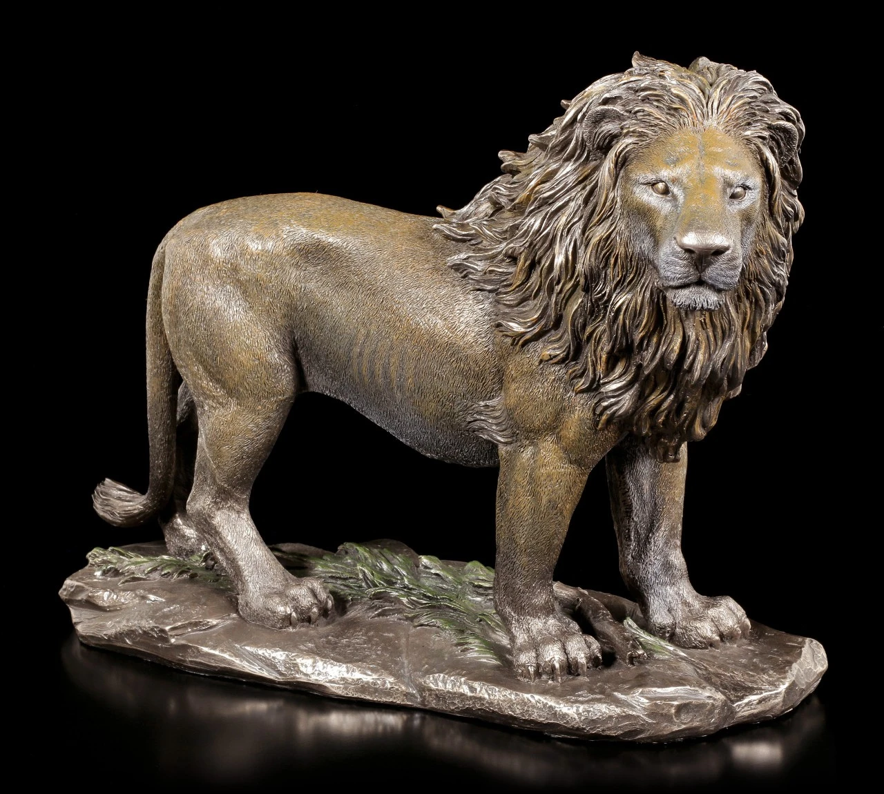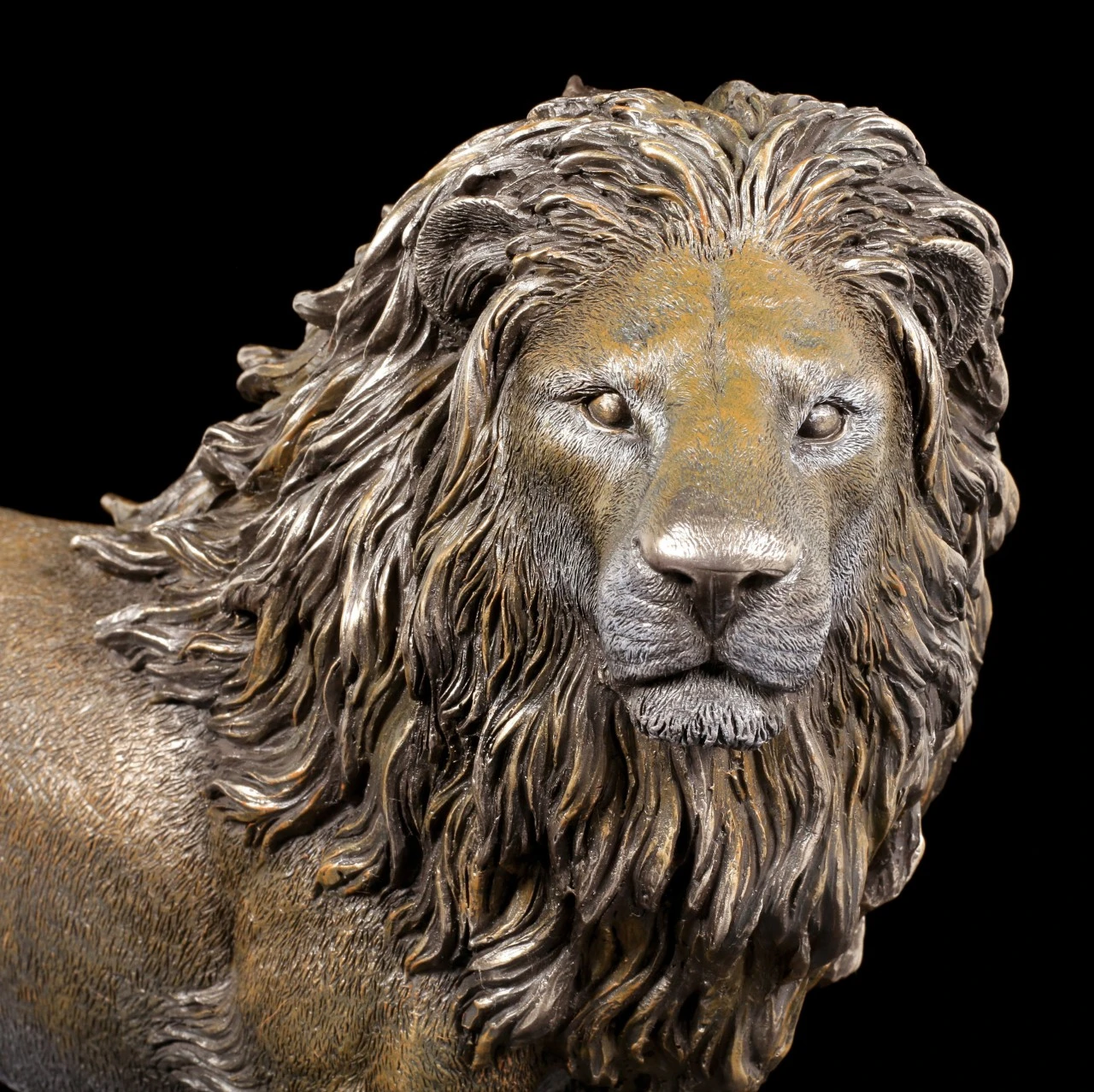 Der König unter den Großkatzen ist der Löwe. Dieses beeindruckende männliche Tier von Veronese wurde aus Kunststein gefertig und anschließend bronziert und coloriert. Der Löwe strahlt eine Macht und Präsenz aus, die jeden Betrachter beeindruckt.