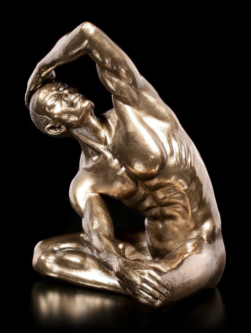 Dieser Mann ist sich seines sinnlichen Körpers voll bewusst und räkelt sich selbstbewusst für den Akt. Der männliche Akt von Veronese wird durch seine Bronzierung zu einem wahren Kunstwerk.
