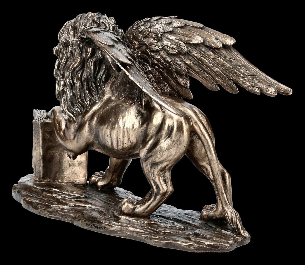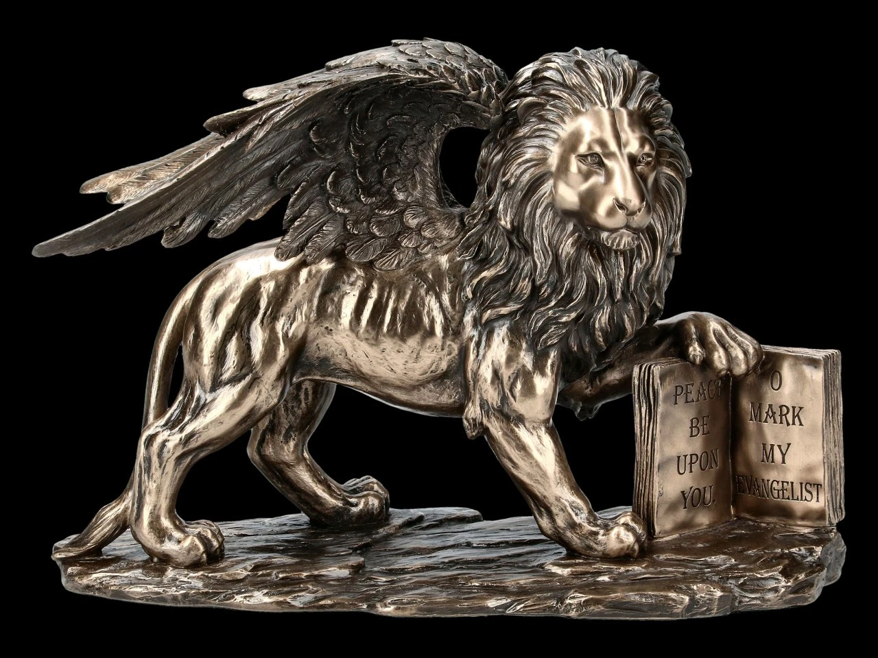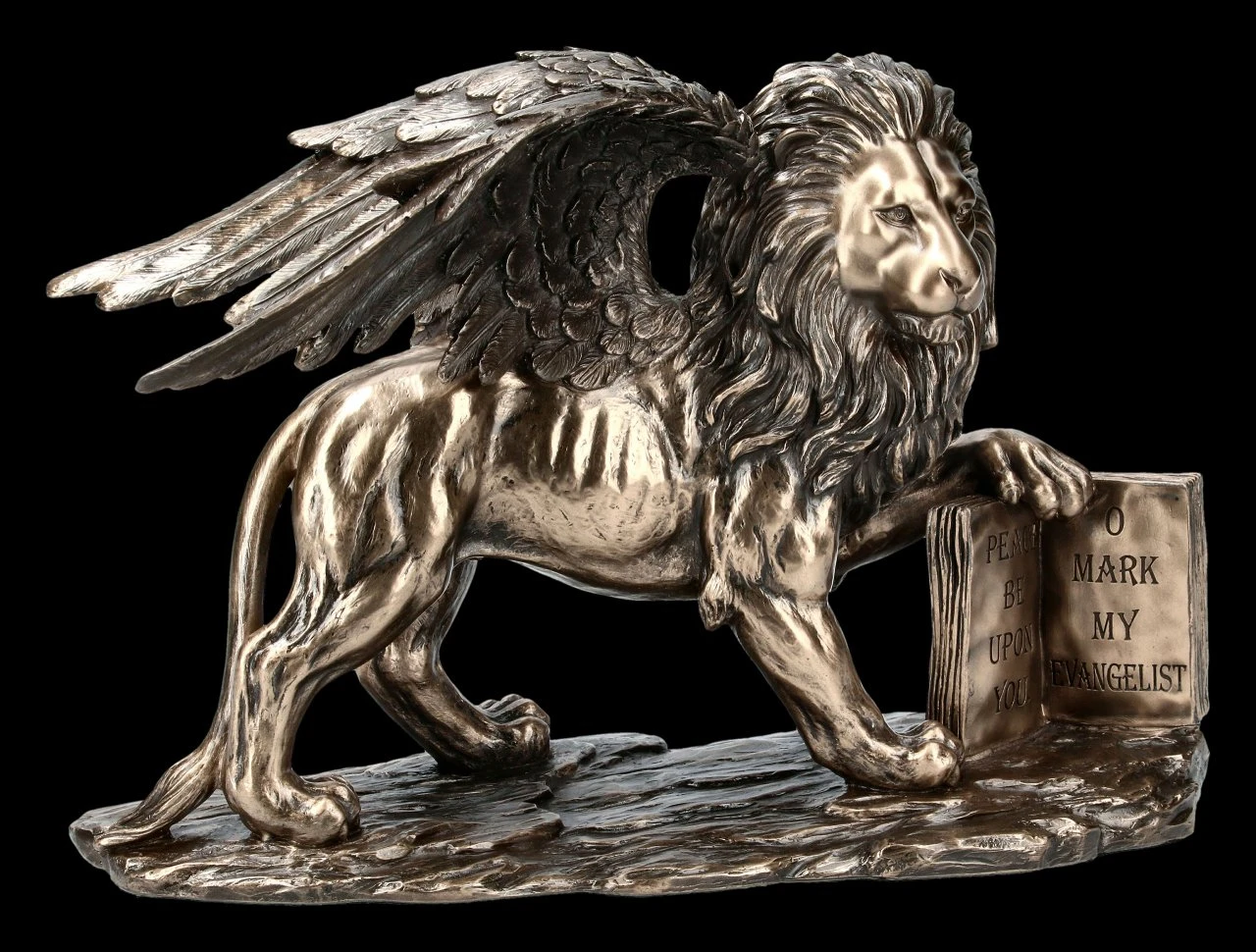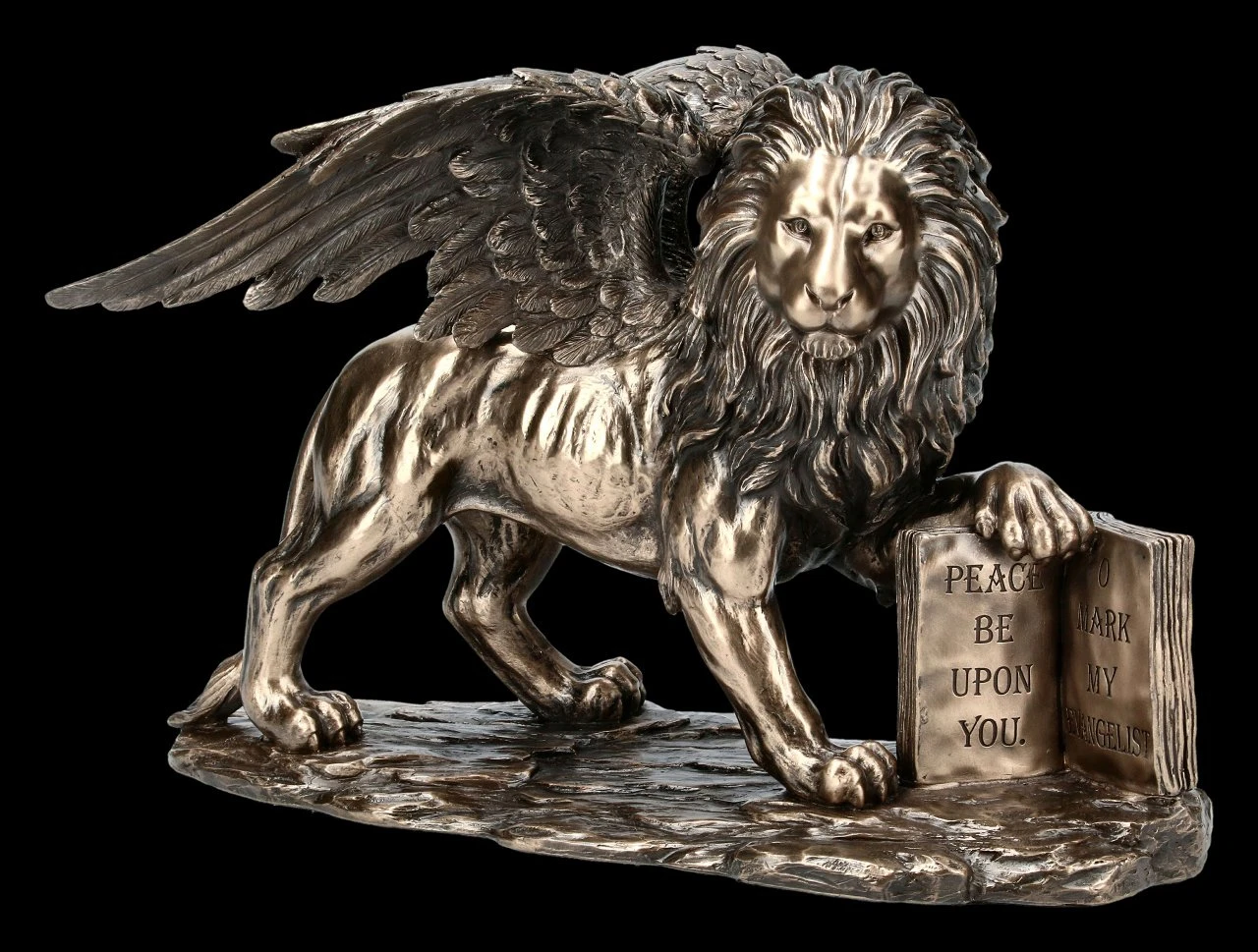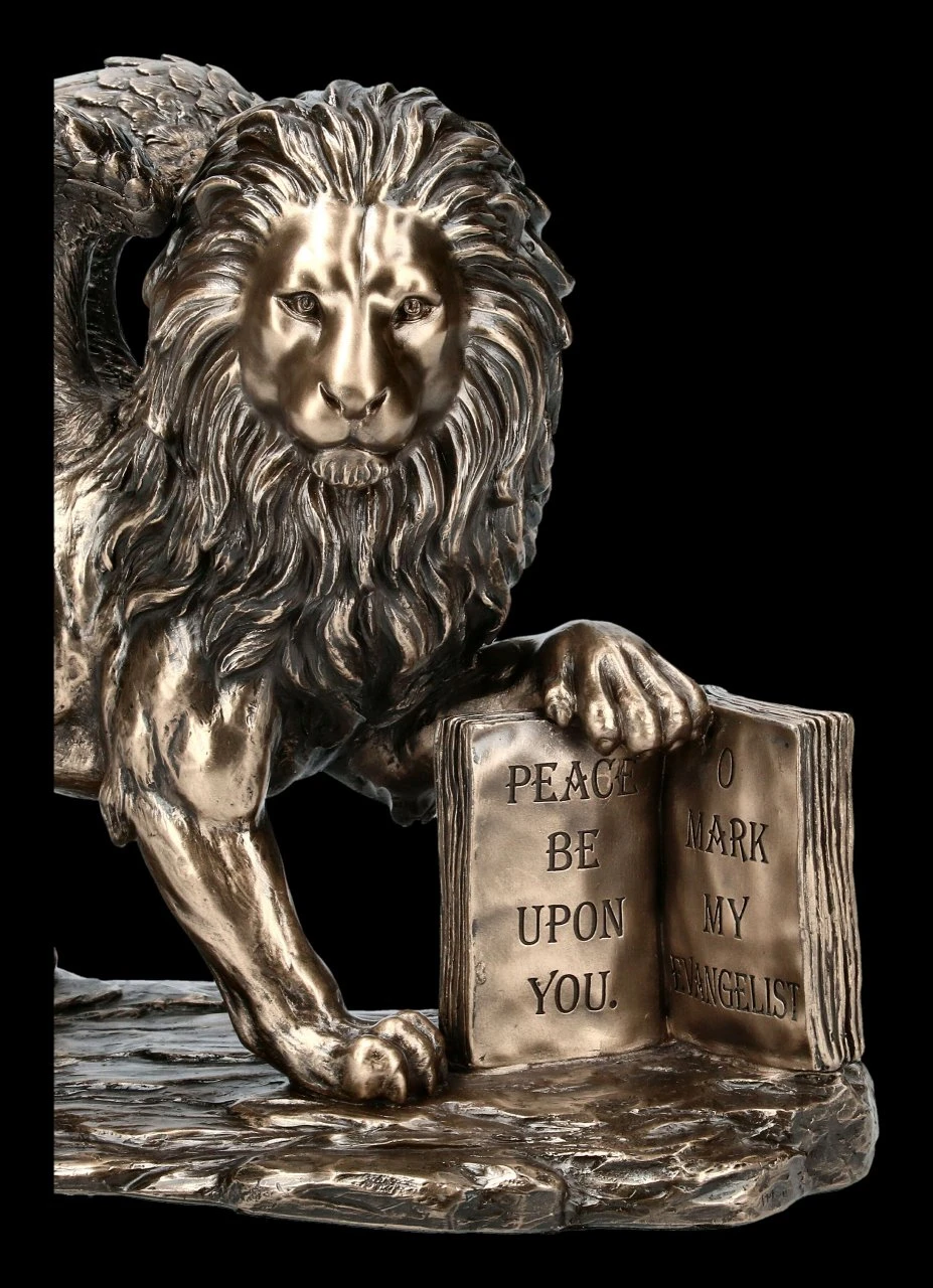 „Friede sei mit dir, Markus, mein Evangelist“ Der Markuslöwe, Venedigs Wappentier, wurde hier wunderbar von Veronese dargestellt. Die bronzierte, geflügelte Löwen Figur ist geschichtsträchtig und sollte bei keinem Liebhaber Italiens fehlen. Auch die italienische Marine führt den Makuslöwen als Wappentier.