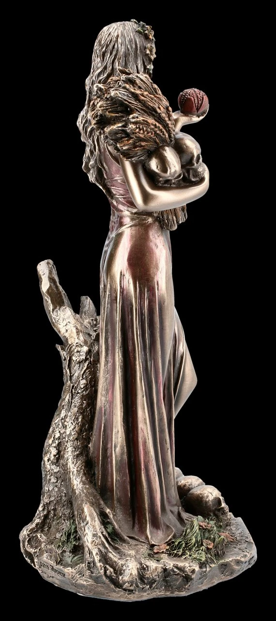 Persephone ist die Tochter Zeus und seiner Schwerster Demeter und ist laut altgriechischer Mythologie die Göttin der Unterwelt, des Totenreichs aber auch der Fruchtbarkeit. Sie wurde, als sie noch Kore genannt wurde, von Hades entführt und in die Unterwelt verschleppt. Von da an wurde sie Persephone genannt. Diese umwerfende Darstellung der Göttin aus dem Haus Veronese ist aus edel bronziertem und coloriertem Kunststein (Polyresin) und gehört zu Serie The Triumphs of Humanity. Persephone, die Göttin der Unterwelt, ist eine herrliche und perfekte Ergänzung jeder Sammlung und damit auch ein wunderbares Geschenk.