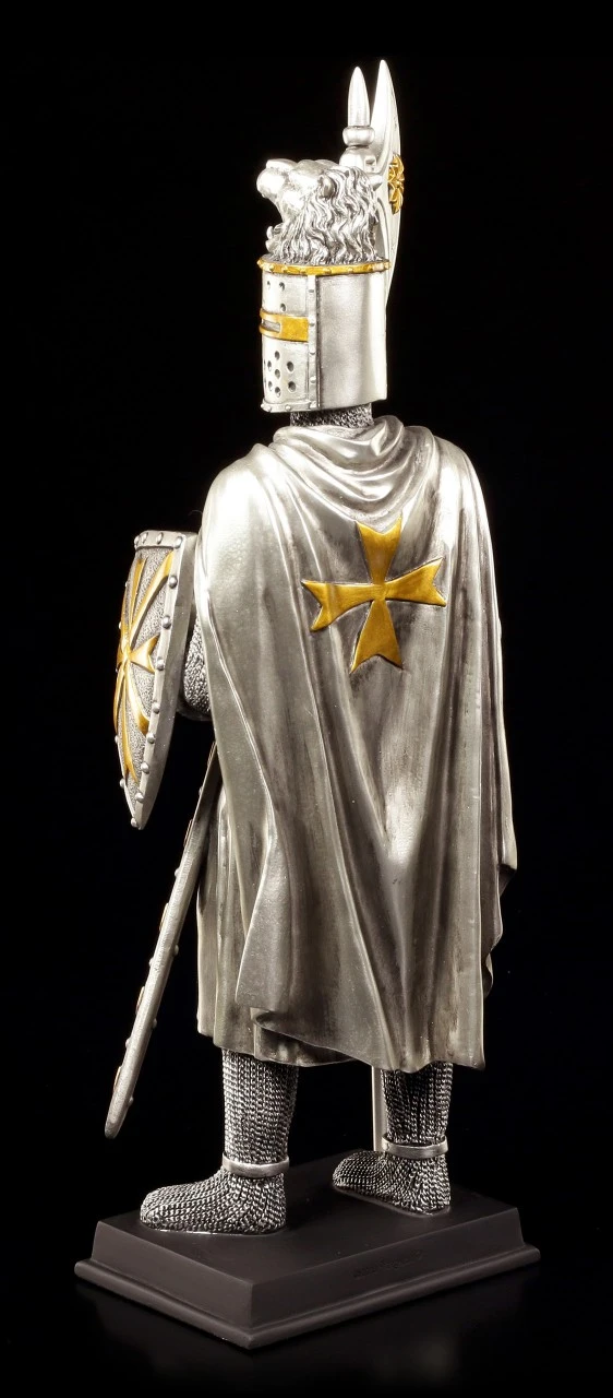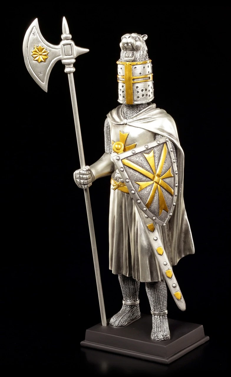 Hoch ragt die Hellebarde neben dem Malteser Ritter auf. Er ist bereits komplett in seine Rüstung gehüllt. Der Löwenkopf auf seinem Helm ist ein Symbol seiner Stärke. Holen auch Sie sich ein Hauch des Mittelalters zu sich nach Hause mit dieser edlen Veronese Figur.