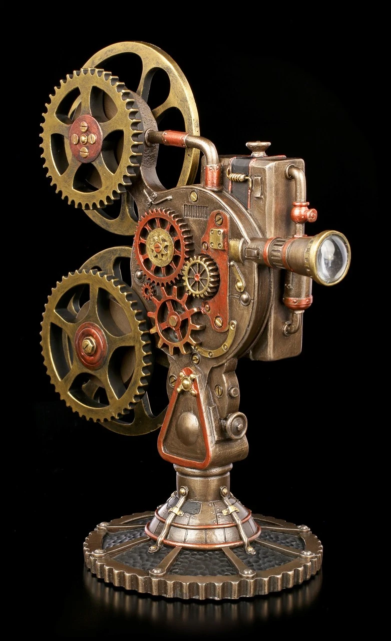 Verleihen Sie Ihrem zu Hause den gewissen Touch mit diesem tollen Retro Kunststein Film Projektor im Steampunk Design. Anstatt Filme abspielen hat es ein kleines LED Licht eingebaut. Der Projektor von Veronese ist aus der Serie Studio Collection.