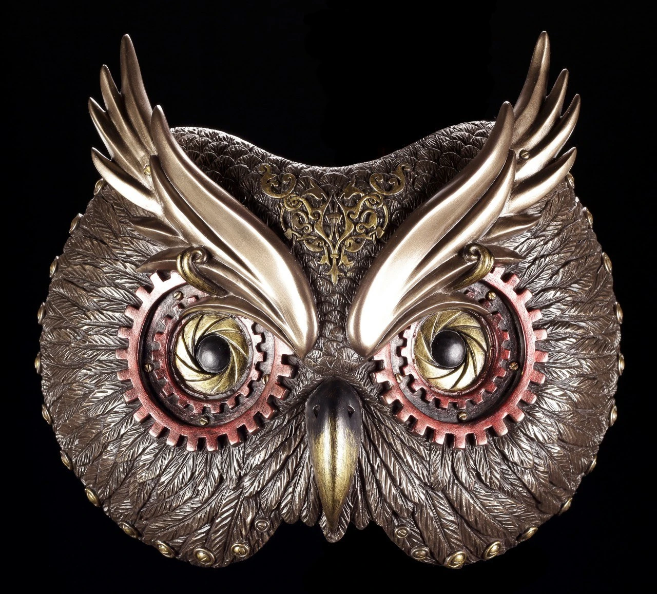 Die Steampunk Eulen Maske wird zu dem Blickfang an Ihrer Wand. Die Maske besticht durch die liebevolle Ausarbeitung und den vielen kleinen Details.