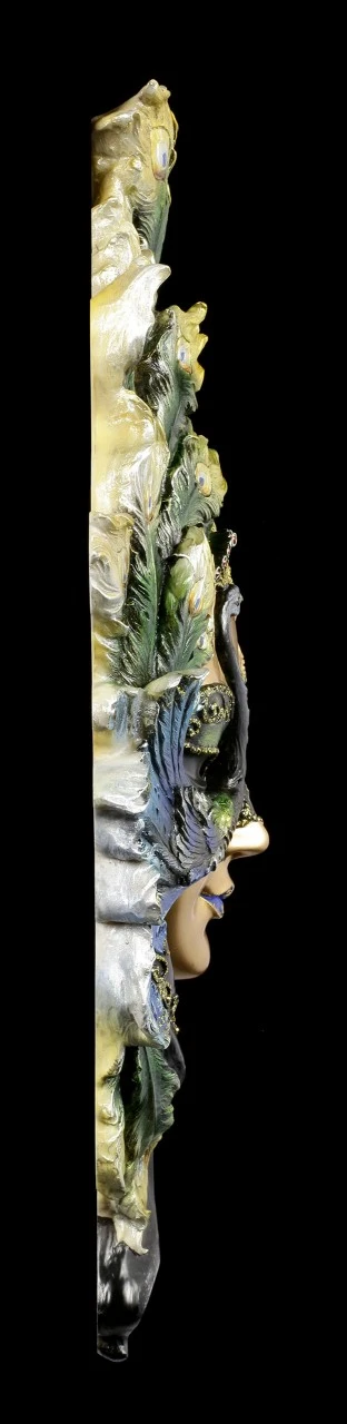 Oh WOW! Was für ein umwerfendes Wandrelief! Die bronzierte und colorierte Venezianische Maske Peacock Garden aus der Studio Collection von Veronese ist einfach beeindruckend. Die aufwändig gestaltete Maske aus Kunststein (Polyresin) ist einem farbenprächtigen Pfau nachempfunden und steht diesem in seiner Eleganz in nichts nach.