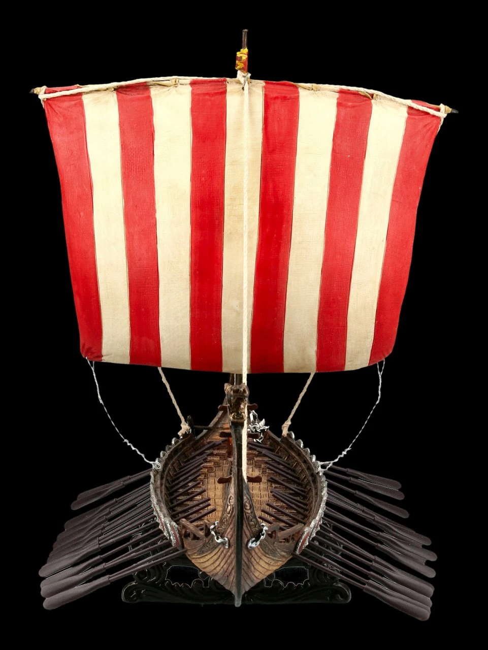 Die Wikinger verwendeten ein Drakkar als ein Schlachtschiff. Diese gelungene Nachbildung des Langschiffes vervollständigt eine Sammlung.